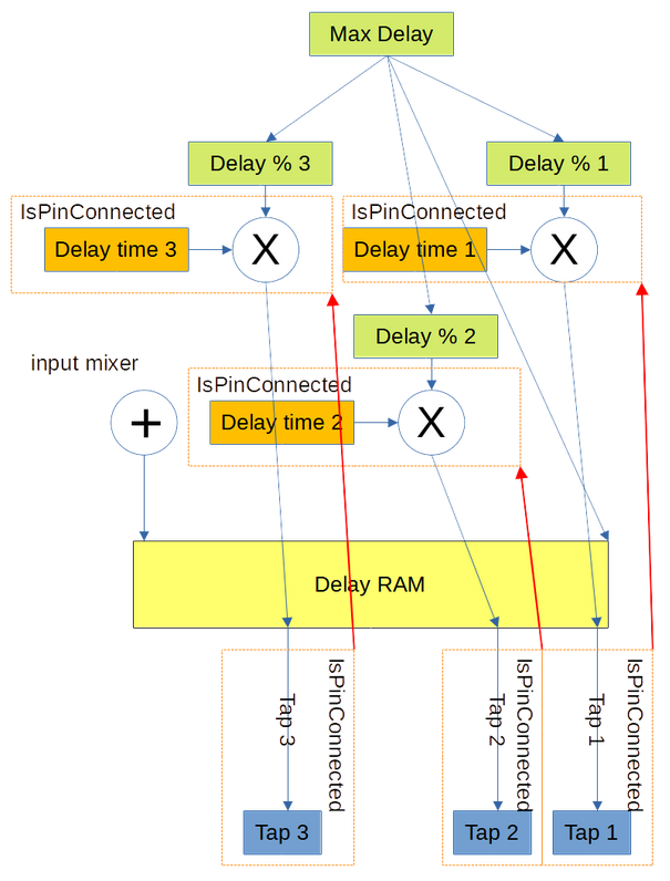 So, here's the final block diagram of the delay part of this block.  As you can see, there are @IsPinConnected macros inside of other @IsPinConnected macros which control code generation depending on whether or not pins are connected.